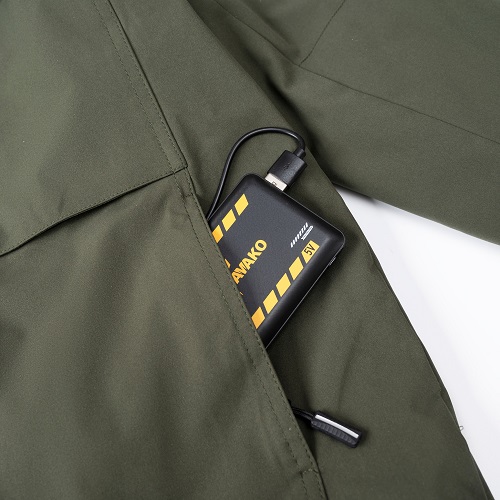 - Pin Áo sưởi ấm: Áo sưởi điện thường có PIN áo sưởi cài ở phần bụng được giấu trong túi trong áo, giúp áo cố định và ôm sát vào người mặc. Người mặc sẽ không hề khó chịu vướng víu khi mang 1 cục pin theo người. Hệ thống dây dẫn nhiệt được truyền từ pin vào các lá sưởi sẽ giúp người mặc luôn được giữ ấm trong mọi điều kiện thời tiết.