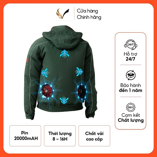 - 1 Pin Áo điều hòa: có khả năng cung cấp năng lượng liên tục từ 12-15 tiếng liên tục mà không cần sạc lại.