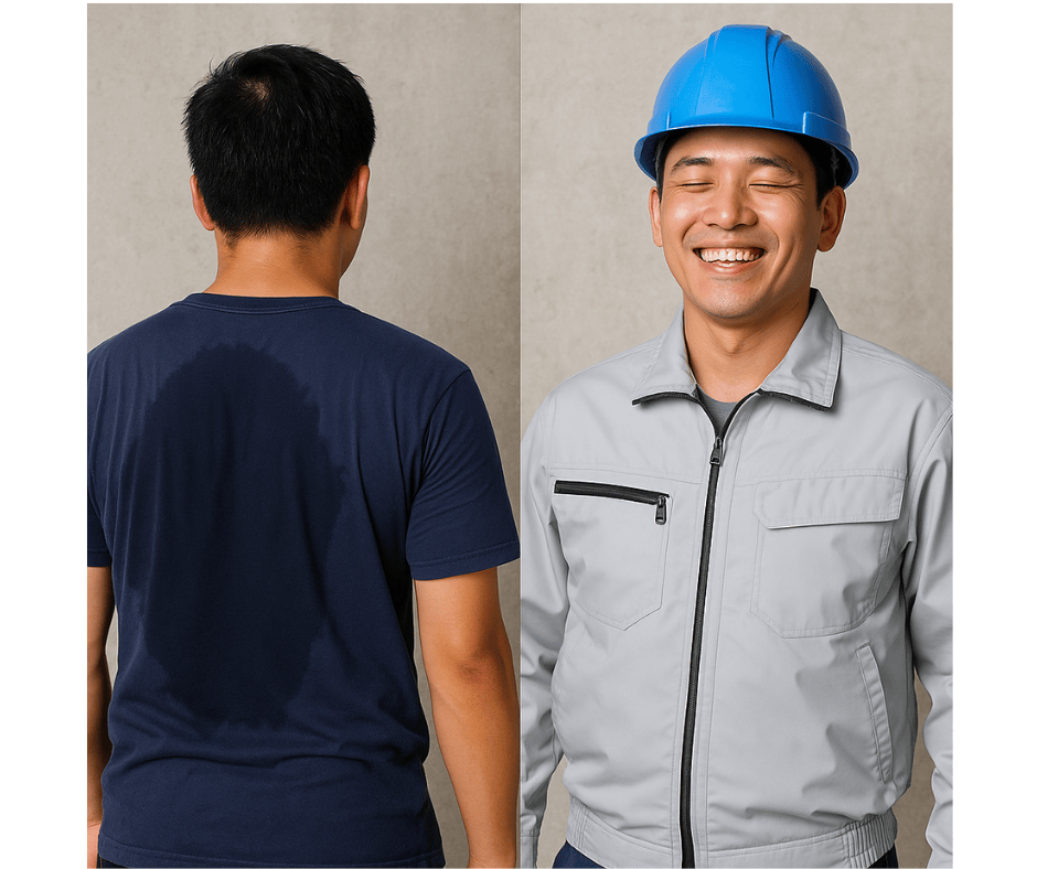 Anh Hùng – một người cha 2 con – làm việc tại một xưởng cơ khí ở Hà Nội. Mỗi ngày, anh làm việc trong cái nóng hầm hập như lò nung, áo ướt sũng vì mồ hôi, đôi khi còn say nắng đến mức choáng váng. “Có hôm về đến nhà là mệt lả, không ăn nổi cơm… chỉ mong có cái gì đó mát hơn áo vải bình thường,” anh chia sẻ.