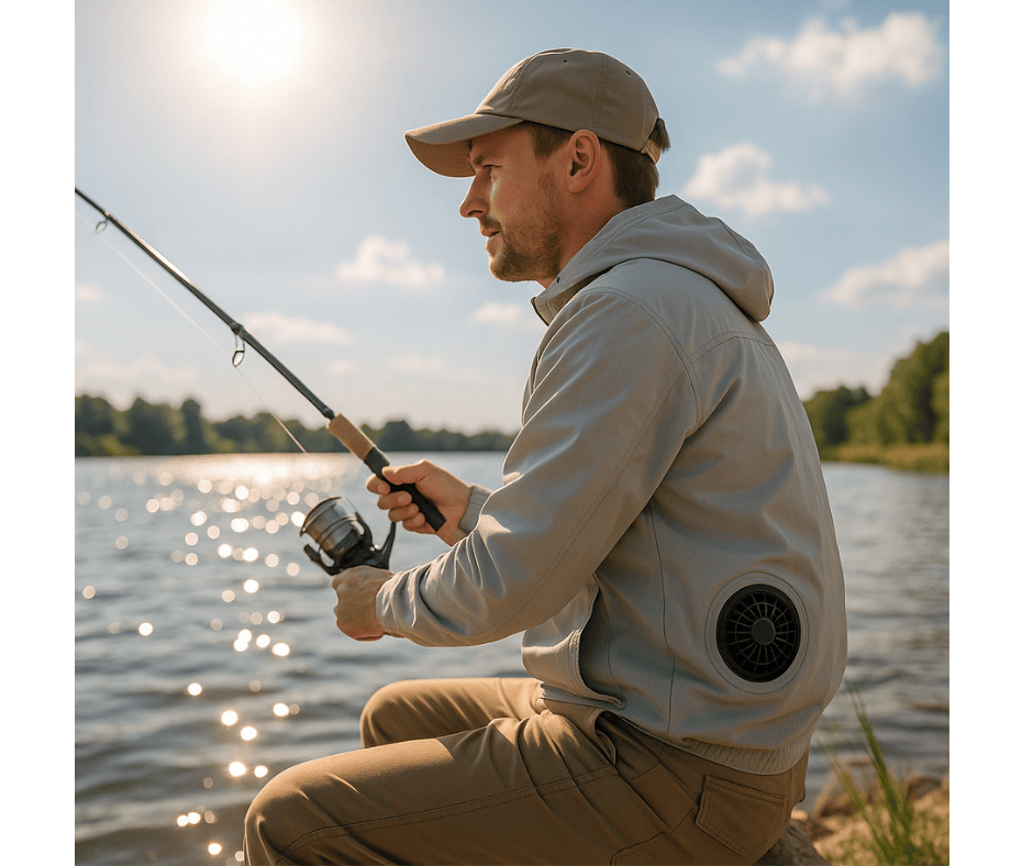 Áo điều hòa không chỉ là trang phục bảo hộ thông minh dành cho công nhân công trình hay kỹ sư công nghiệp, mà còn đang trở thành “vũ khí chống nóng” lý tưởng cho dân câu cá chuyên nghiệp và đam mê. Trong những ngày hè nắng như đổ lửa, việc ngồi hàng giờ liền bên hồ, sông hay kênh rạch để săn cá là một thử thách không hề dễ chịu. Thay vì chịu đựng mồ hôi ướt đẫm và cái nóng như thiêu đốt, ngày càng nhiều người chọn áo điều hòa Nhật Bản như một cách để giữ cơ thể mát mẻ – tinh thần sảng khoái – hiệu suất câu cá cao hơn rõ rệt.