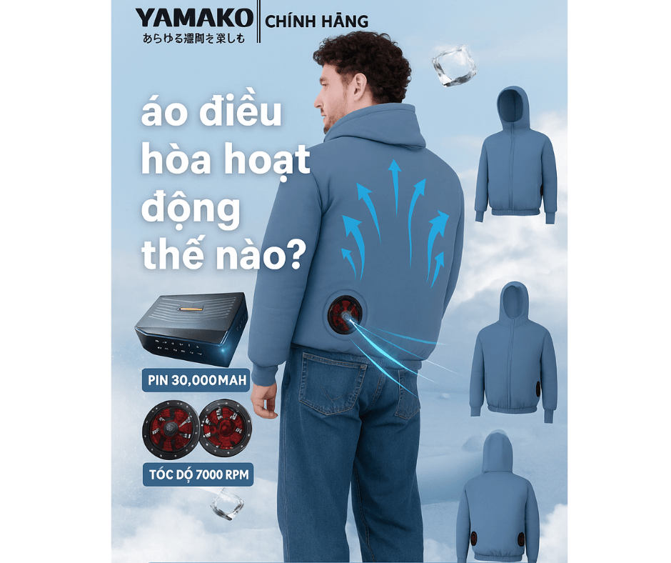 Gợi ý thương hiệu: Bạn có thể tham khảo các dòng áo điều hòa Yamako Nhật Bản, đang được ưa chuộng trên thị trường Việt Nam với giá từ 950.000đ đến 1.399.000đ – pin khủng, quạt mạnh, thiết kế chuẩn Nhật.