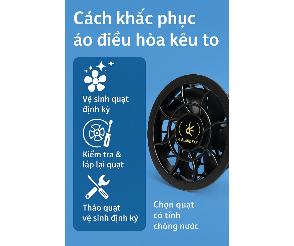 Áo điều hòa ngày càng trở thành lựa chọn hàng đầu trong mùa hè oi bức tại Việt Nam nhờ khả năng làm mát hiệu quả, bảo vệ sức khỏe và tiết kiệm chi phí. Tuy nhiên, trong quá trình sử dụng, nhiều người gặp phải tình trạng quạt áo điều hòa kêu to, gây khó chịu và ảnh hưởng đến hiệu suất làm mát. Vậy nguyên nhân do đâu và cách khắc phục thế nào?