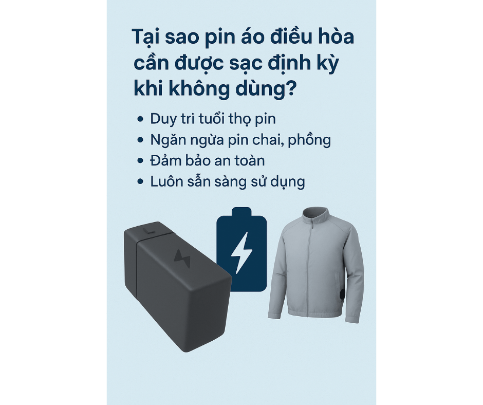 1. Tại sao pin áo điều hòa cần được sạc định kỳ khi không dùng?