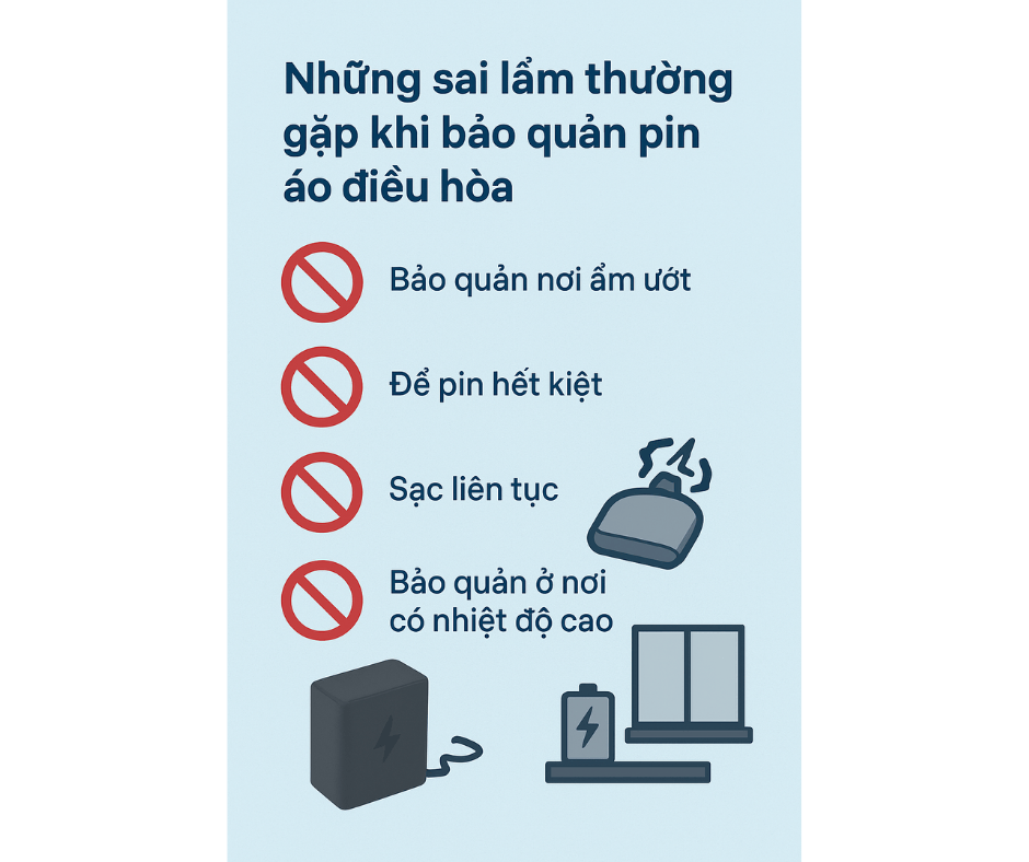 3. Những sai lầm thường gặp khi bảo quản pin áo điều hòa