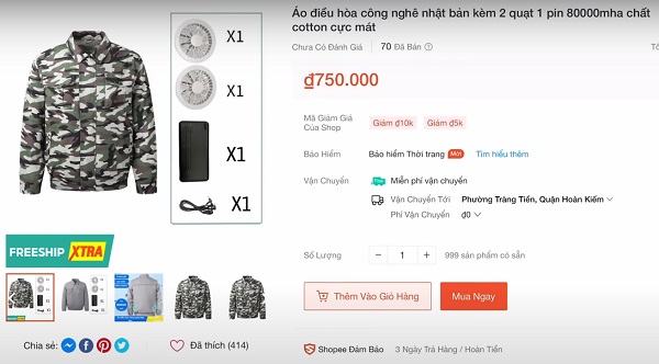 Bời vì giá 1 bộ pin quạt 20.000 mAH đúng chuẩn Nhật bản đã có giá từ 1tr2 đến 1tr5. Do đó áo quạt 80.000 mAh có thật sự rẻ chỉ 750.000 hay không? Hay đây là chiêu trò thổi phồng giá không đúng của người bán.
