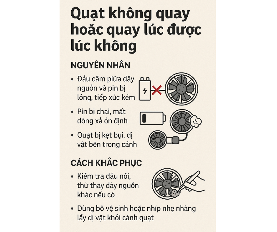 Khi quạt áo điều hòa chập chờn, lúc quay lúc không, nhiều người dùng nghĩ áo bị hỏng. Thực tế có thể chỉ là lỗi kết nối hoặc do pin không ổn định.