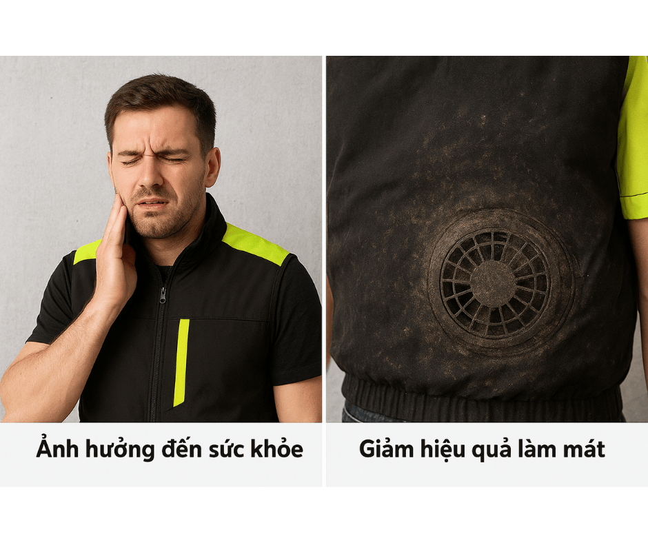Ảnh hưởng đến sức khỏe: Bụi bẩn và vi khuẩn tích tụ trên quạt và áo có thể gây ra các bệnh về da, hô hấp và dị ứng.