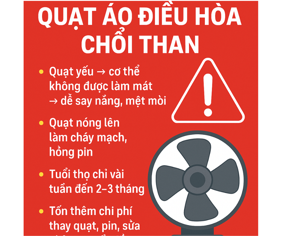 🎯 Giải pháp: Chọn áo điều hòa dùng quạt không chổi than – pin ổn định