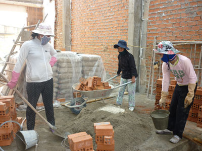 (Nhân công lao động ngoài trời chịu cái nóng oi bức)