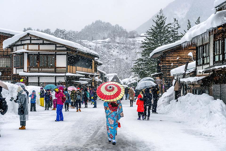 (Mùa đông ở Nhật thường có tuyết và trời rất lạnh)